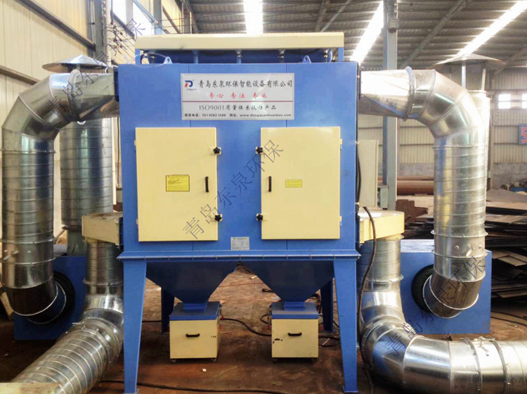 等離子切割除塵設(shè)備簡(jiǎn)介 根據(jù)切割機(jī)規(guī)格尺寸,確保除塵效果的前提下,本著最經(jīng)濟(jì)、維護(hù)方便,運(yùn)行經(jīng)濟(jì),后續(xù)費(fèi)用小的要求。 干式雙吸式除塵系統(tǒng),即在切割平臺(tái)的兩側(cè)放置兩根滑動(dòng)吸風(fēng)道,吸風(fēng)口放在滑動(dòng)風(fēng)道這個(gè)過(guò)程中的吸風(fēng)道由平臺(tái)隔柵與隔柵之間的間距形成。隔柵以下部分為干式隔板,需定期清理里面的切割粉渣。 該種除塵方式屬于兩級(jí)過(guò)濾,切割產(chǎn)生的煙塵先經(jīng)過(guò)一個(gè)PA4火花捕捉器擋掉火星和濾除大的顆粒,然后再經(jīng)過(guò)濾筒式高效煙塵凈化器過(guò)濾掉細(xì)小的對(duì)人體危害比較大的微塵。需要注意的是由于火焰切割機(jī)產(chǎn)生的煙塵與等離子切割機(jī)煙塵相似煙塵量相當(dāng),但是由于切割精度差異產(chǎn)生的廢料較多,因此吸風(fēng)格柵需要做成寬度250mm一個(gè),3個(gè)一組。具體圖紙合同簽訂后青島東泉提供。