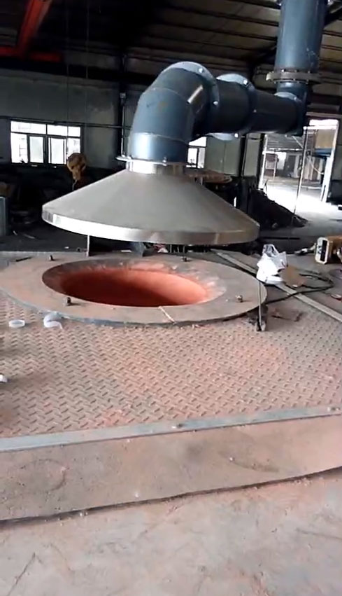 電爐除塵器裝置系統(tǒng)為:將來自工業(yè)硅生產(chǎn)電爐的煙氣,在離心式主風(fēng)機(jī)的抽吸作用下,煙氣由半封閉式電爐內(nèi)引出,沿著煙道首先進(jìn)入旋風(fēng)除塵器。把粗粒、火星分離出來,使其沉降于灰斗至卸料器排出。在有旋風(fēng)除塵器的出口排出,超細(xì)粉塵及含塵氣體進(jìn)入一個(gè)熱交換器,風(fēng)冷降低煙氣溫度,然后其它塵粒隨氣流上升進(jìn)入布袋除塵器各個(gè)袋室。經(jīng)濾袋過濾后,粉塵被阻留在濾袋外面,凈化后的氣體由濾袋進(jìn)入箱體,再通過袋口和上箱體(凈氣室)出風(fēng)口進(jìn)入離心式主風(fēng)機(jī)在排入煙囪至大氣?;叶分械姆蹓m定時(shí)或連續(xù)由卸灰系統(tǒng)排出。